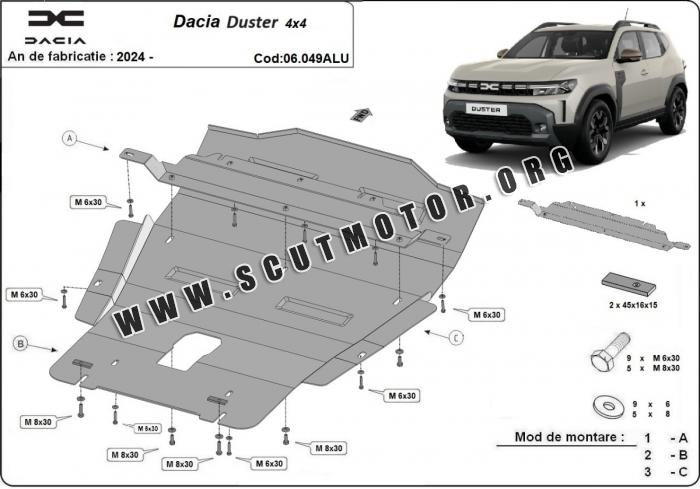 Scut motor din aluminiu Dacia Duster - 4x4 2024 - 2026