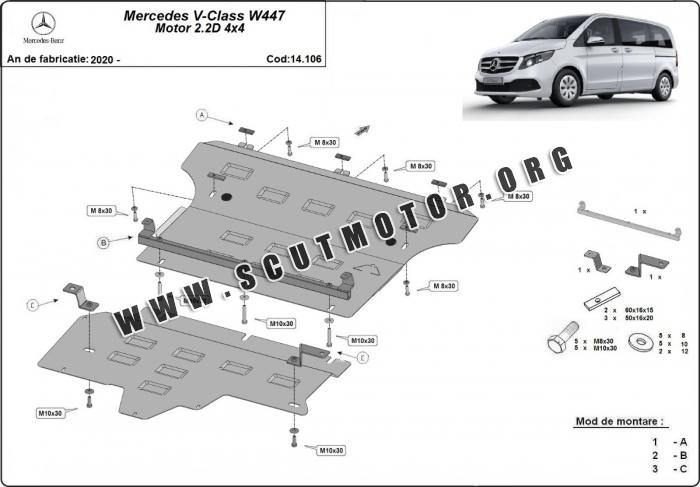 Scutul este nouă și se potrivește perfect pentru tipurile de motorizare 2.0, 2.2 D, 4x4 - Mercedes V-Class W447 fabricat între ani 2020 - 2026