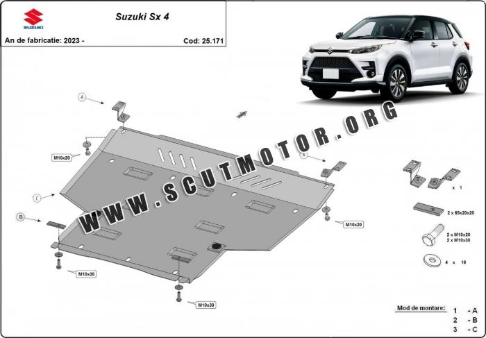 Scutul este nouă și se potrivește perfect pentru toate tipurile de motorizare Suzuki SX4 fabricat între ani 2023 - 2026.