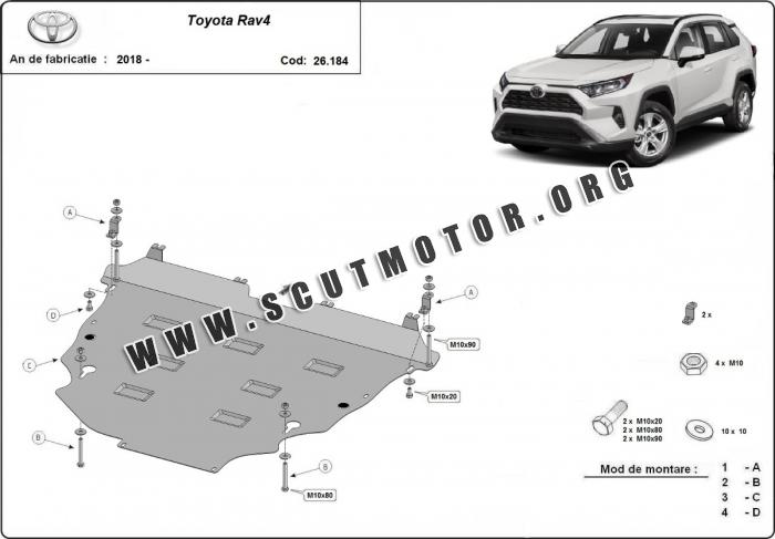 Scutul este nouă și se potrivește perfect pentru toate tipurile de motorizare Toyota RAV 4 fabricat între ani 2018 - 2026.