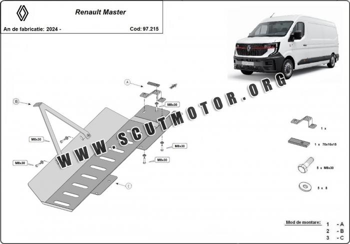 Scutul este nouă și se potrivește perfect pentru toate tipurile de motorizare Renault Master fabricat între ani 2024 - 2026.