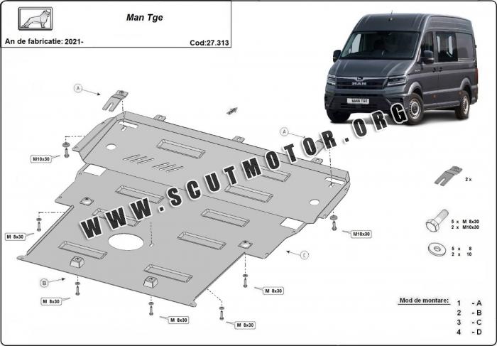 Scutul este nouă și se potrivește perfect pentru toate tipurile de motorizare Man TGE fabricat între ani 2021 - 2026.