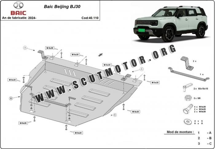 Scutul este nouă și se potrivește perfect pentru toate tipurile de motorizare Baic Beijing BJ30 fabricat între ani 2024 - 2026.