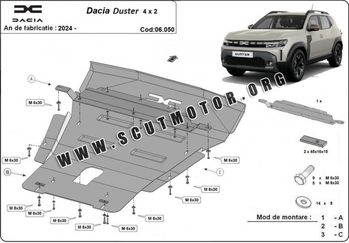 Scut motor metalic Dacia Duster - 4x2 2024 - 2026