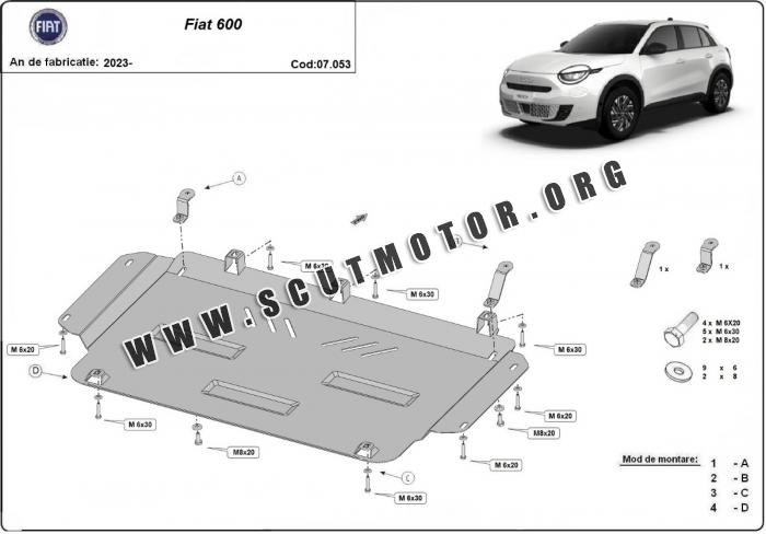 Scutul este nouă și se potrivește perfect pentru toate tipurile de motorizare Fiat 600 fabricat între ani 2023 - 2026.