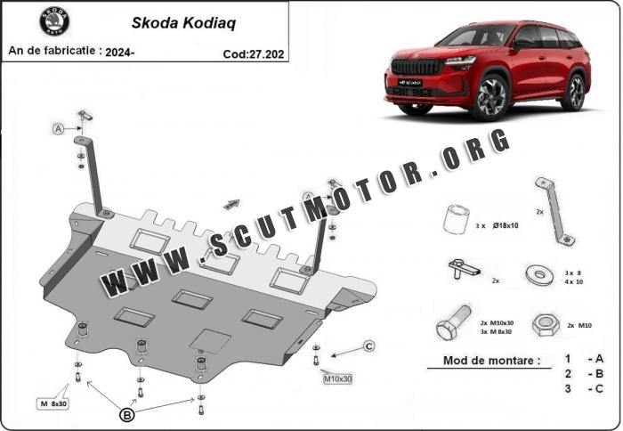Scutul este nouă și se potrivește perfect pentru toate tipurile de motorizare Skoda Kodiaq fabricat între ani 2024 - 2026.