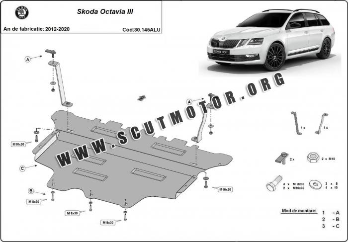 Scutul este nouă și se potrivește perfect pentru toate tipurile de motorizare Skoda Octavia III fabricat între ani 2012 - 2020.