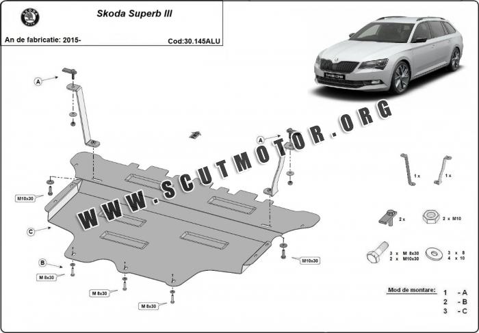 Scutul este nouă și se potrivește perfect pentru toate tipurile de motorizare Skoda Superb fabricat între ani 2015 - 2026.