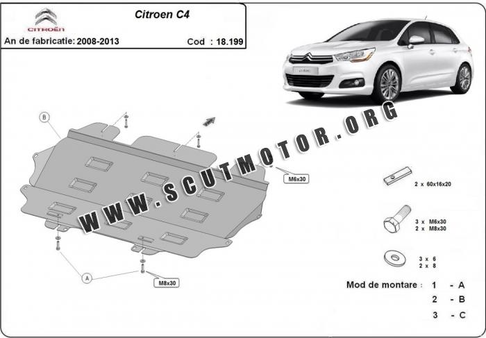 Scutul este nouă și se potrivește perfect pentru toate tipurile de motorizare Citroen C4 fabricat între ani 2008 - 2013.
