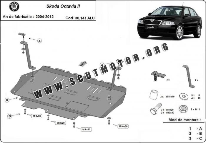Scutul este nouă și se potrivește perfect pentru toate tipurile de motorizare Skoda Octavia 2 fabricat între ani 2004 - 2012.