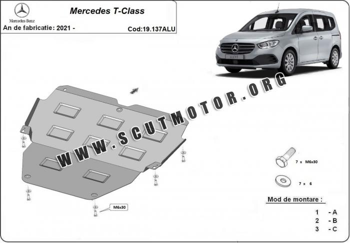 Scutul este nouă și se potrivește perfect pentru toate tipurile de motorizare Mercedes T-Class fabricat între ani 2021 - 2026.