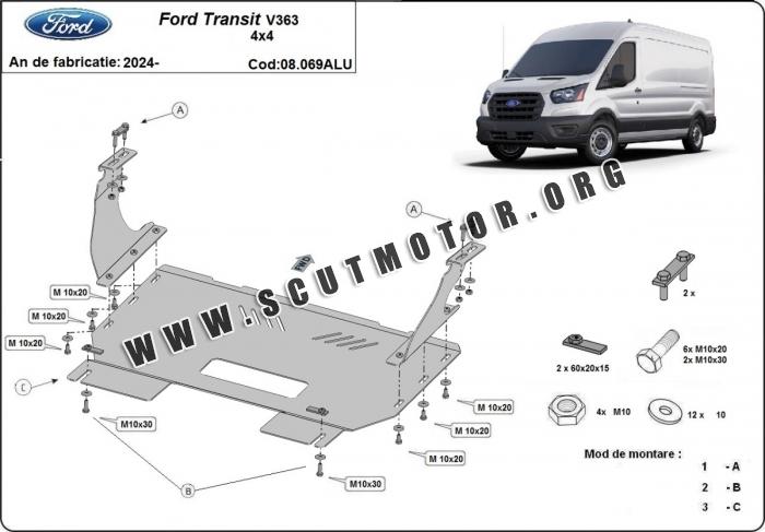 Scutul este nouă și se potrivește perfect pentru toate tipurile de motorizare Ford Transit V363 4x4 fabricat între ani 2024 - 2026.