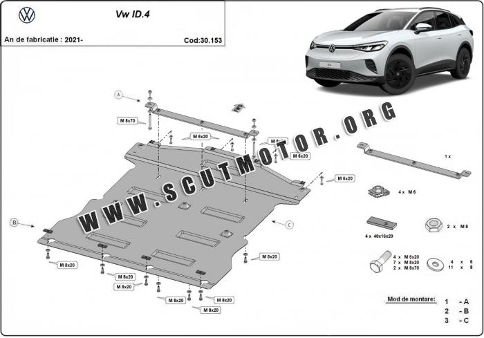 Scutul este nouă și se potrivește perfect pentru toate tipurile de motorizare Volkswagen ID 4 fabricat între ani 2021 - 2026.