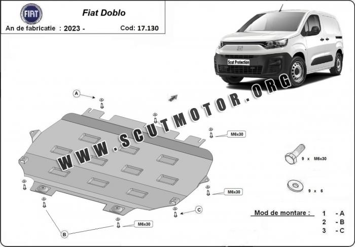 Scutul este nouă și se potrivește perfect pentru toate tipurile de motorizare Fiat Doblo fabricat între ani 2023 - 2026.