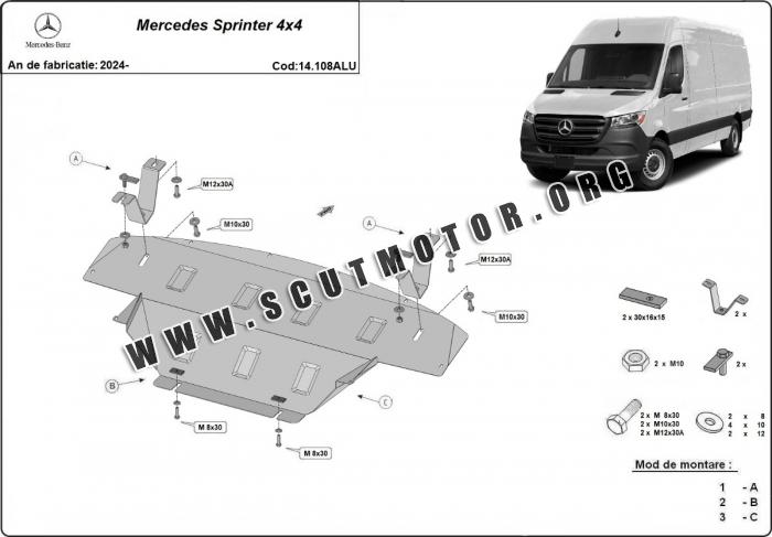 Scutul este nouă și se potrivește perfect pentru toate tipurile de motorizare Mercedes Sprinter 4x4 fabricat între ani 2024 - 2026.