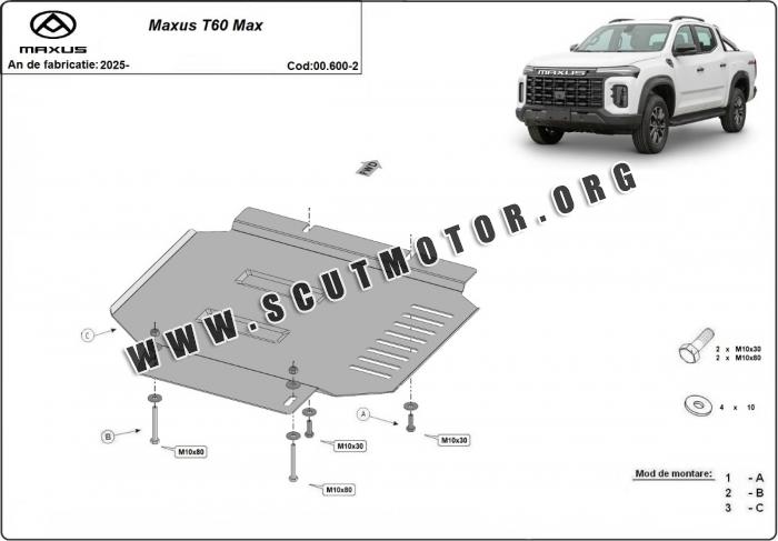Scutul este nouă și se potrivește perfect pentru toate tipurile de motorizare Maxus T60 Max fabricat între ani 2025 - 2026.