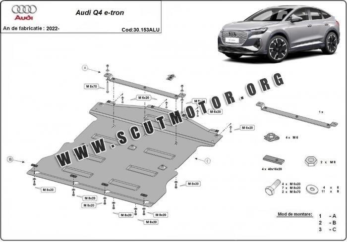 Scutul este nouă și se potrivește perfect pentru toate tipurile de motorizare Audi Q 4 e-tron fabricat între ani 2022 - 2026.