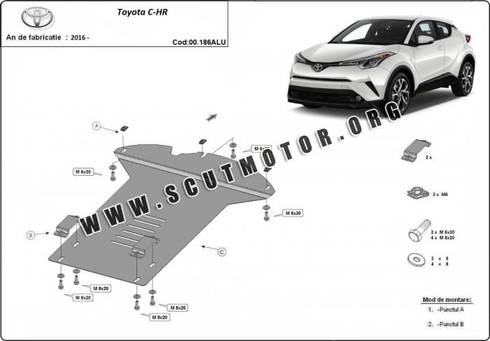 Scutul este nouă și se potrivește perfect pentru toate tipurile de motorizare Toyota C-HR fabricat între ani 2016 - 2023.