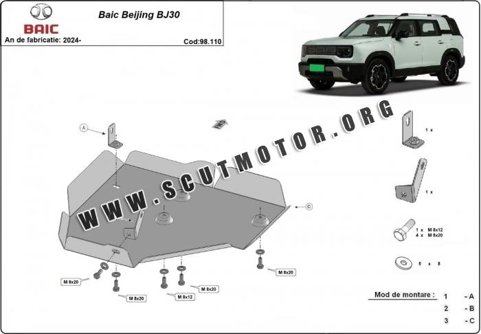 Scutul este nouă și se potrivește perfect pentru toate tipurile de motorizare Baic Beijing BJ30 fabricat între ani 2024 - 2026.