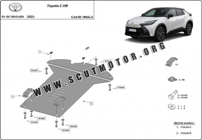 Scutul este nouă și se potrivește perfect pentru toate tipurile de motorizare Toyota C-HR fabricat între ani 2023 - 2026.