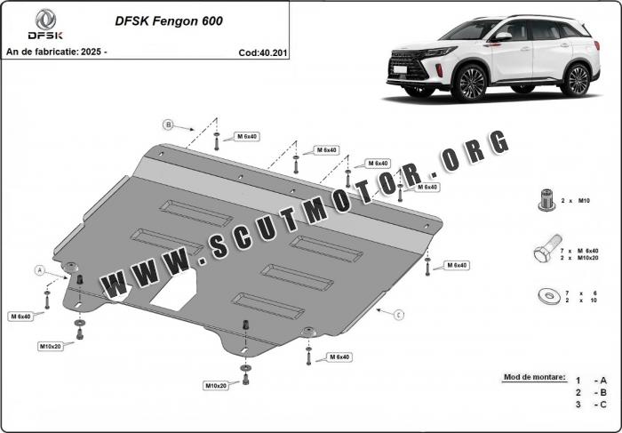 • Scutul este nouă și se potrivește perfect pentru toate tipurile de motorizare Fengon 600 fabricat între ani 2025 - 2026.