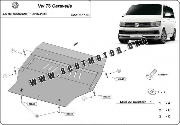 Scutul este nouă și se potrivește perfect pentru toate tipurile de motorizare Volkswagen Transporter Caravelle fabricat între ani 2015 - 2018.