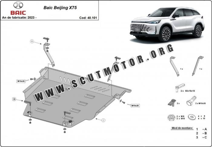 Scutul este nouă și se potrivește perfect pentru toate tipurile de motorizare Baic Beijing X75 fabricat între ani 2023 - 2026.