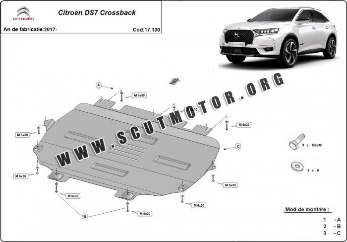 Scutul este nouă și se potrivește perfect pentru toate tipurile de motorizare Citroen DS7 Crossback fabricat între ani 2017 - 2026.