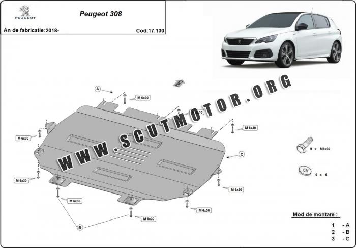 Scutul este nouă și se potrivește perfect pentru toate tipurile de motorizare Peugeot 308 fabricat între ani 2018 - 2026.