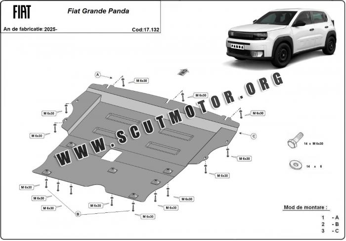 Scutul este nouă și se potrivește perfect pentru toate tipurile de motorizare Fiat Grande Panda fabricat între ani 2025 - 2026.