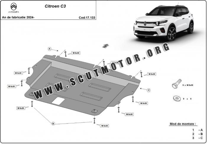 Scutul este nouă și se potrivește perfect pentru toate tipurile de motorizare Citroen C3 fabricat între ani 2024 - 2026.