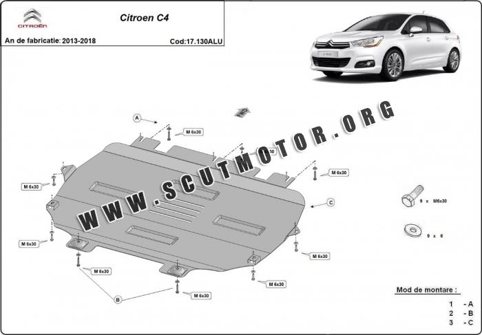 Scutul este nouă și se potrivește perfect pentru toate tipurile de motorizare Citroen C4 fabricat între ani 2013 - 2018.
