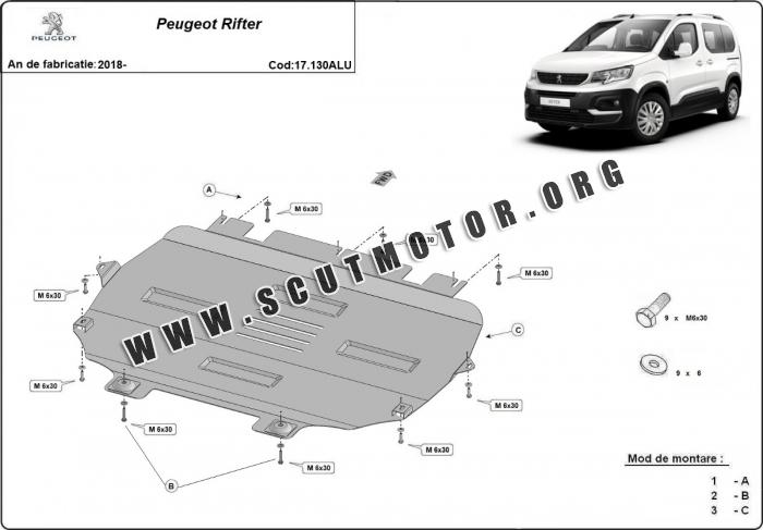 Scutul este nouă și se potrivește perfect pentru toate tipurile de motorizare Peugeot Rifter fabricat între ani 2018 - 2026.