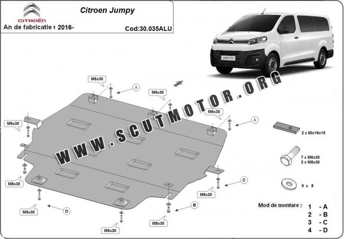 Scutul este nouă și se potrivește perfect pentru toate tipurile de motorizare Citroen Jumpy fabricat între ani 2016 - 2026.