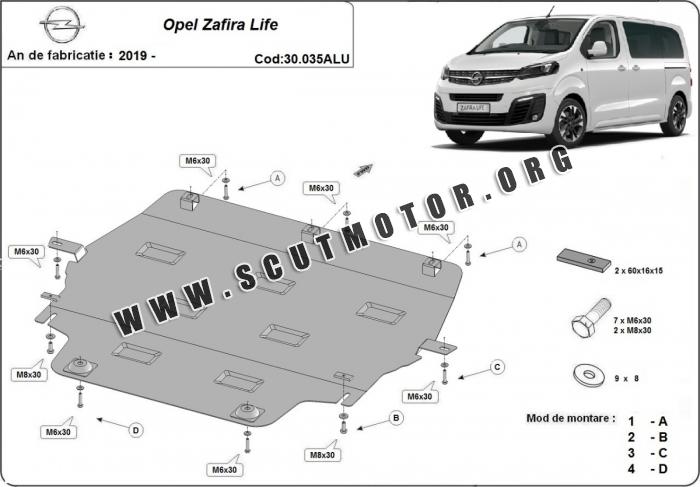 Scutul este nouă și se potrivește perfect pentru toate tipurile de motorizare Opel Zafira Life fabricat între ani 2019 - 2026.
