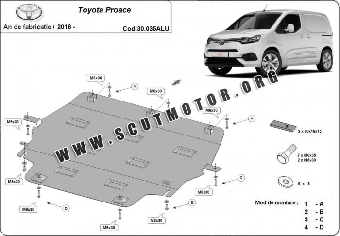 Scutul este nouă și se potrivește perfect pentru toate tipurile de motorizare Toyota Proace fabricat între ani 2016 - 2026.