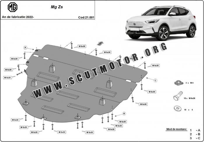 Scutul este nouă și se potrivește perfect pentru toate tipurile de motorizare MG ZS fabricat între ani 2022 - 2026.