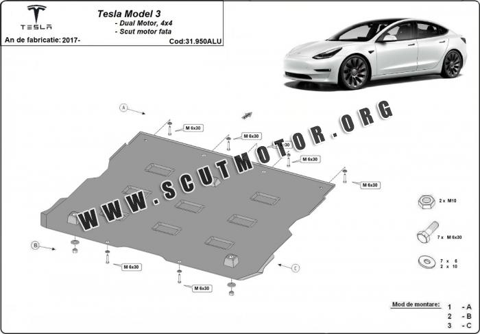 Scutul este nouă și se potrivește perfect pentru toate tipurile de motorizare Tesla Model 3 AWD fabricat între ani 2017 - 2026.