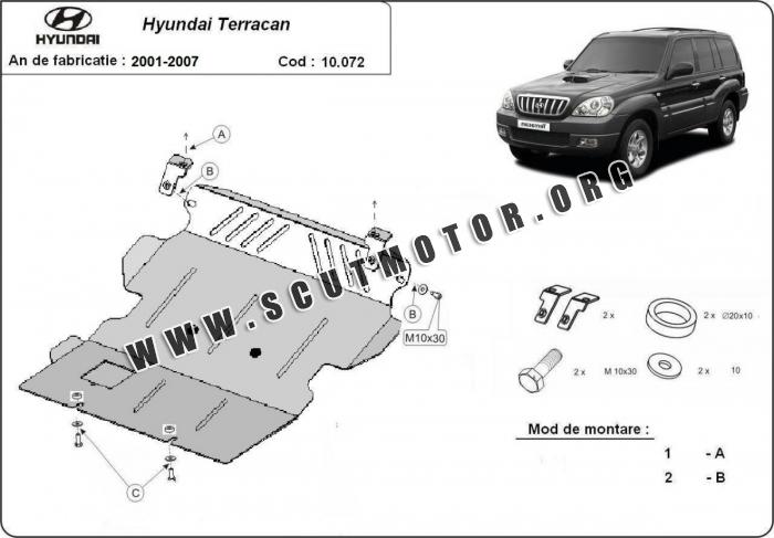Scutul este nouă și se potrivește perfect pentru toate tipurile de motorizare Hyundai Terracan fabricat între ani 2001 - 2008.