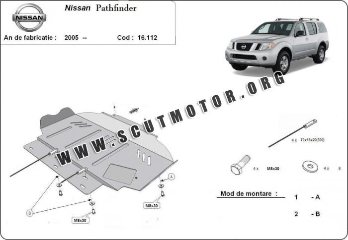 Scutul este nouă și se potrivește perfect pentru toate tipurile de motorizare Nissan Pathfinder fabricat între ani 2005 - 2015.