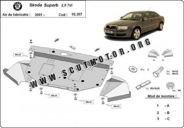 Scutul este nouă și se potrivește perfect pentru tipurile de motorizare 2.5 Tdi, V6 - Skoda Superb fabricat între ani 2001 - 2008