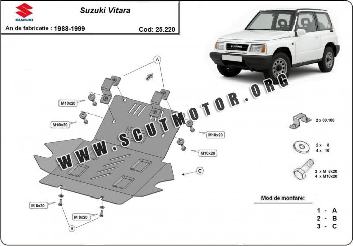Scutul este nouă și se potrivește perfect pentru toate tipurile de motorizare Suzuki Vitara fabricat între ani 1988 - 1999.