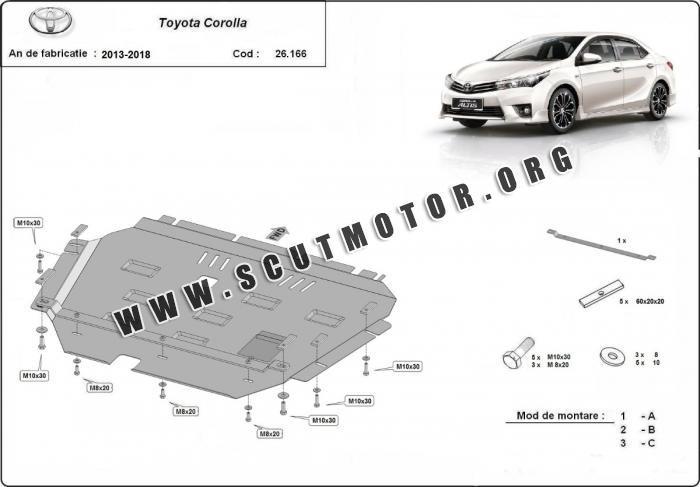 Scutul este nouă și se potrivește perfect pentru toate tipurile de motorizare Toyota Corolla fabricat între ani 2013 - 2018.