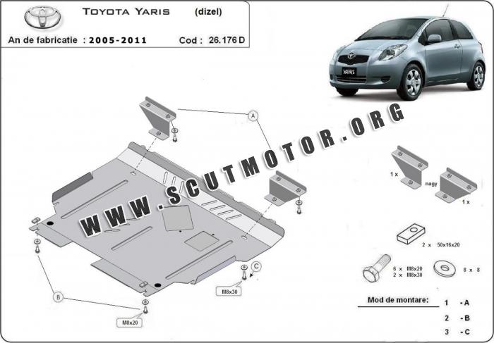 Scutul este nouă și se potrivește perfect pentru tipurile de motorizare diesel - Toyota Yaris fabricat între ani 2005 - 2011