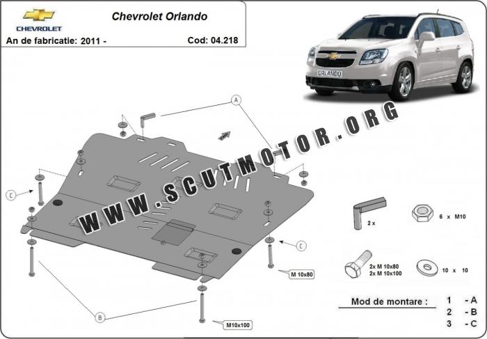 Scutul motor se livrează impreună cu șuruburi, piulițe, cleme și toate accesoriile pentru montare și nu necesită modificări ulterioare pentru a putea fi montat pe mașină.