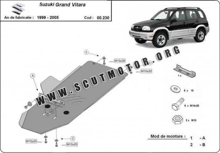 Scutul este nouă și se potrivește perfect pentru toate tipurile de motorizare Suzuki Grand Vitara fabricat între ani 1999 - 2005.