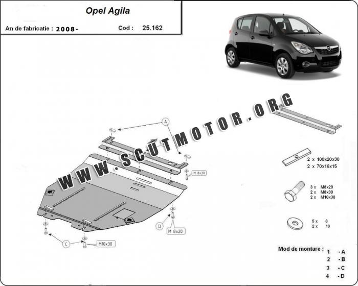 Scutul este nouă și se potrivește perfect pentru toate tipurile de motorizare Opel Agila fabricat între ani 2008 - 2014.