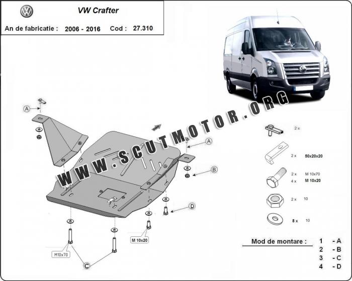 Scutul este nouă și se potrivește perfect pentru toate tipurile de motorizare Volkswagen Crafter fabricat între ani 2006 - 2016.
