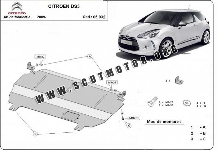 Scutul este nouă și se potrivește perfect pentru tipurile de motorizare 1.1, 1.4, 1.6, 1.6 HDI - Citroen DS3 fabricat între ani 2009 - 2026