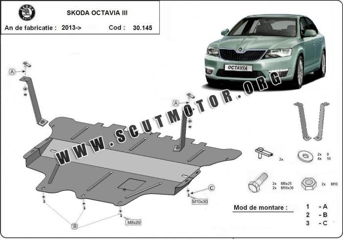 Scutul este nouă și se potrivește perfect pentru toate tipurile de motorizare Skoda Octavia III fabricat între ani 2013 - 2019.